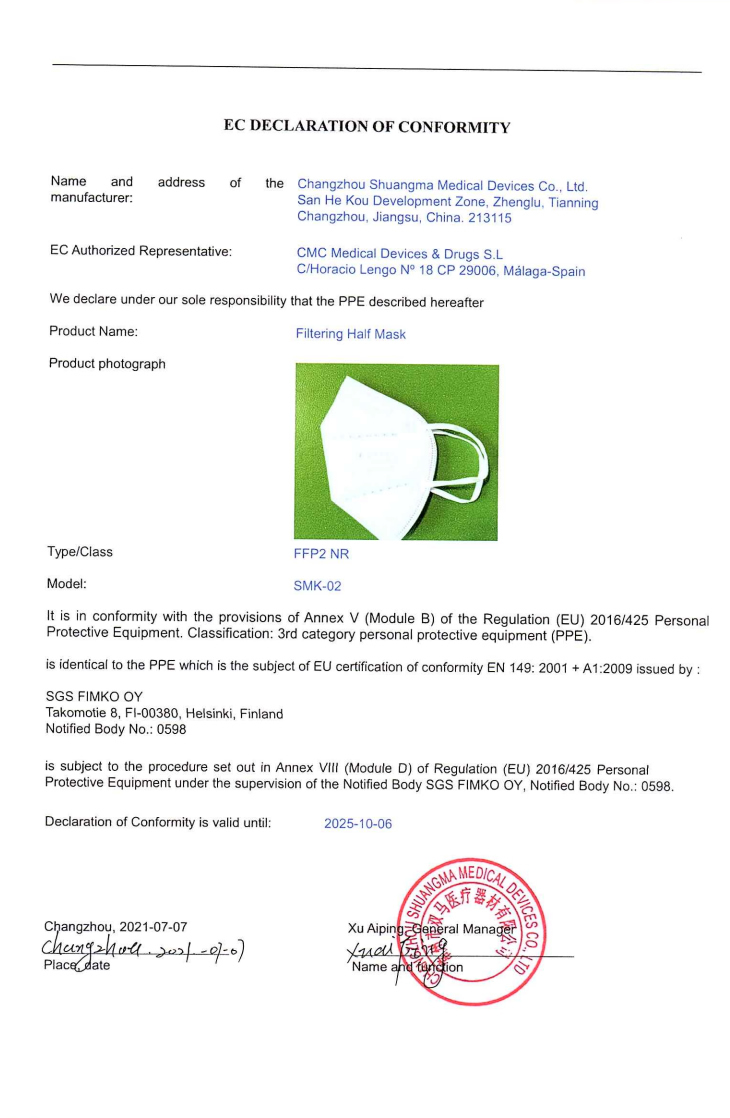 FFP2的符合性聲明0598